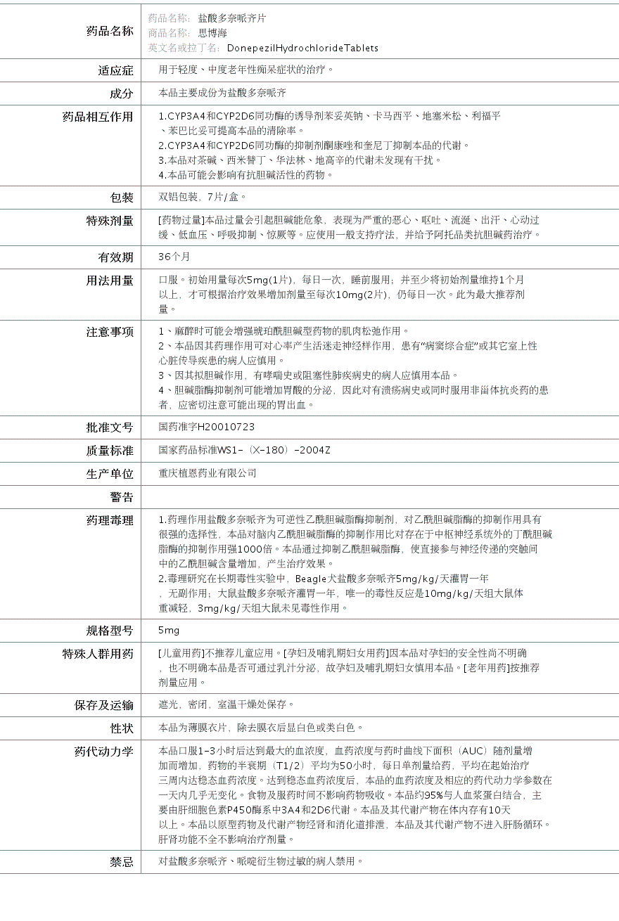 国药准字H20010723