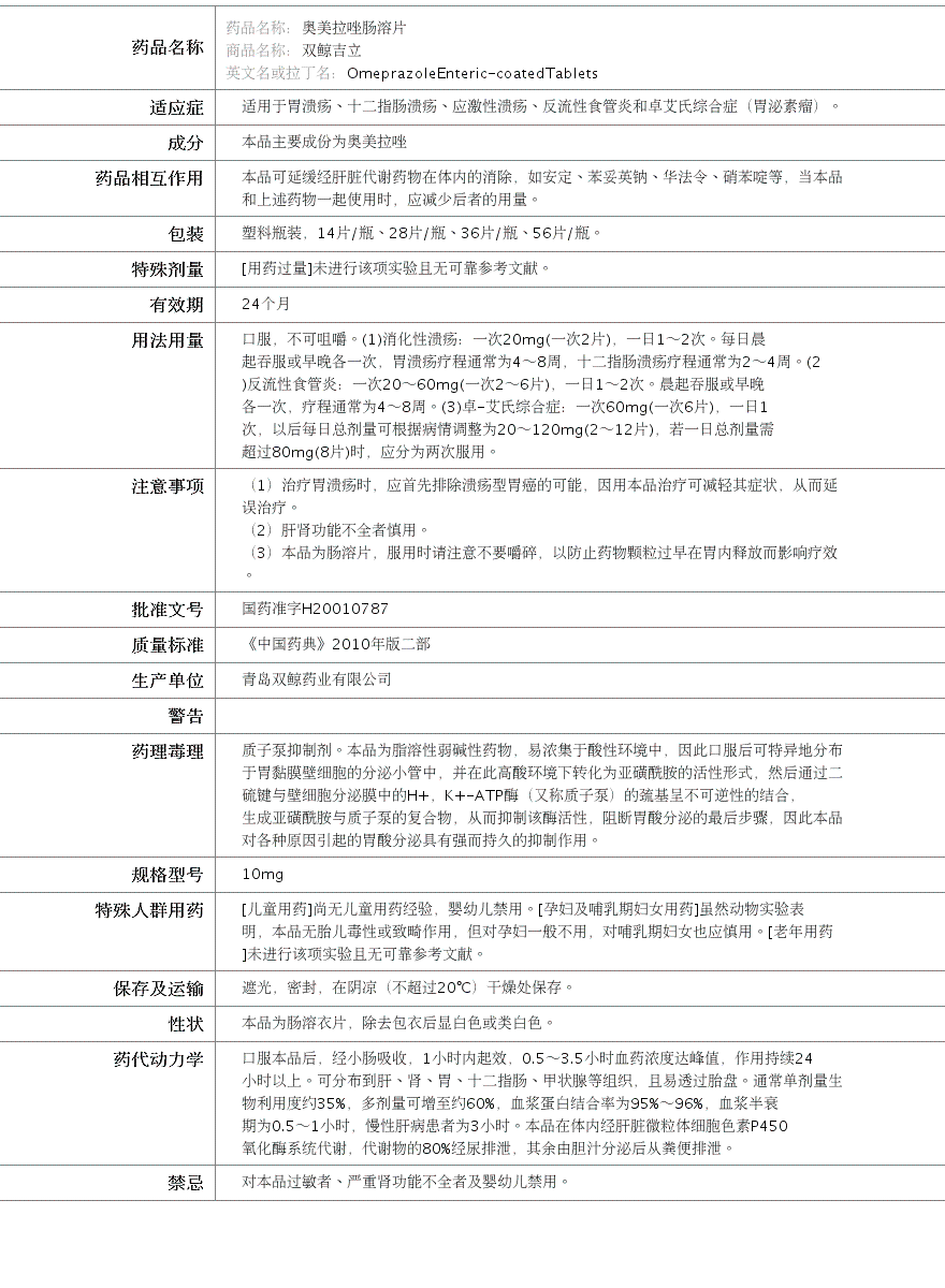 国药准字H20010787