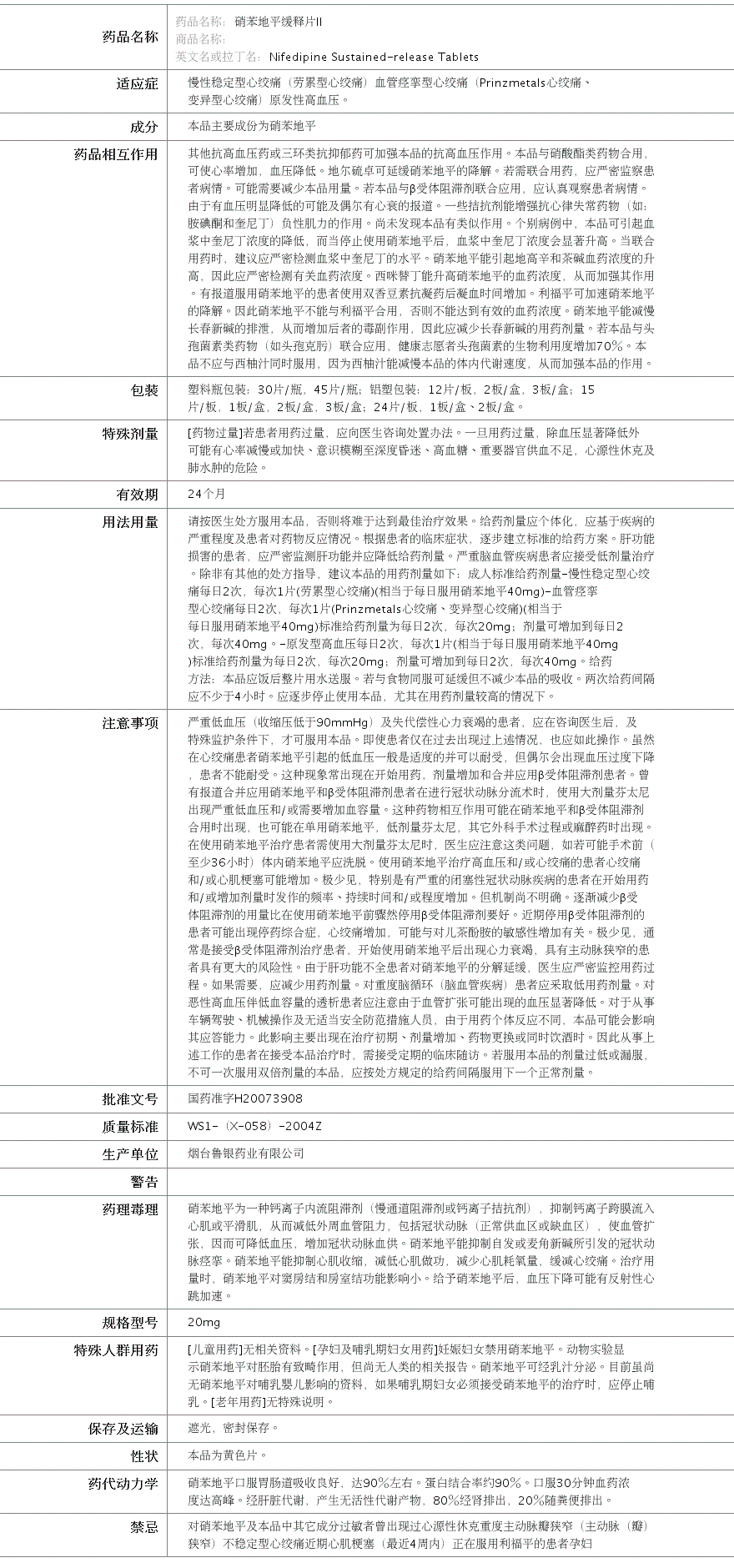 国药准字H20073908