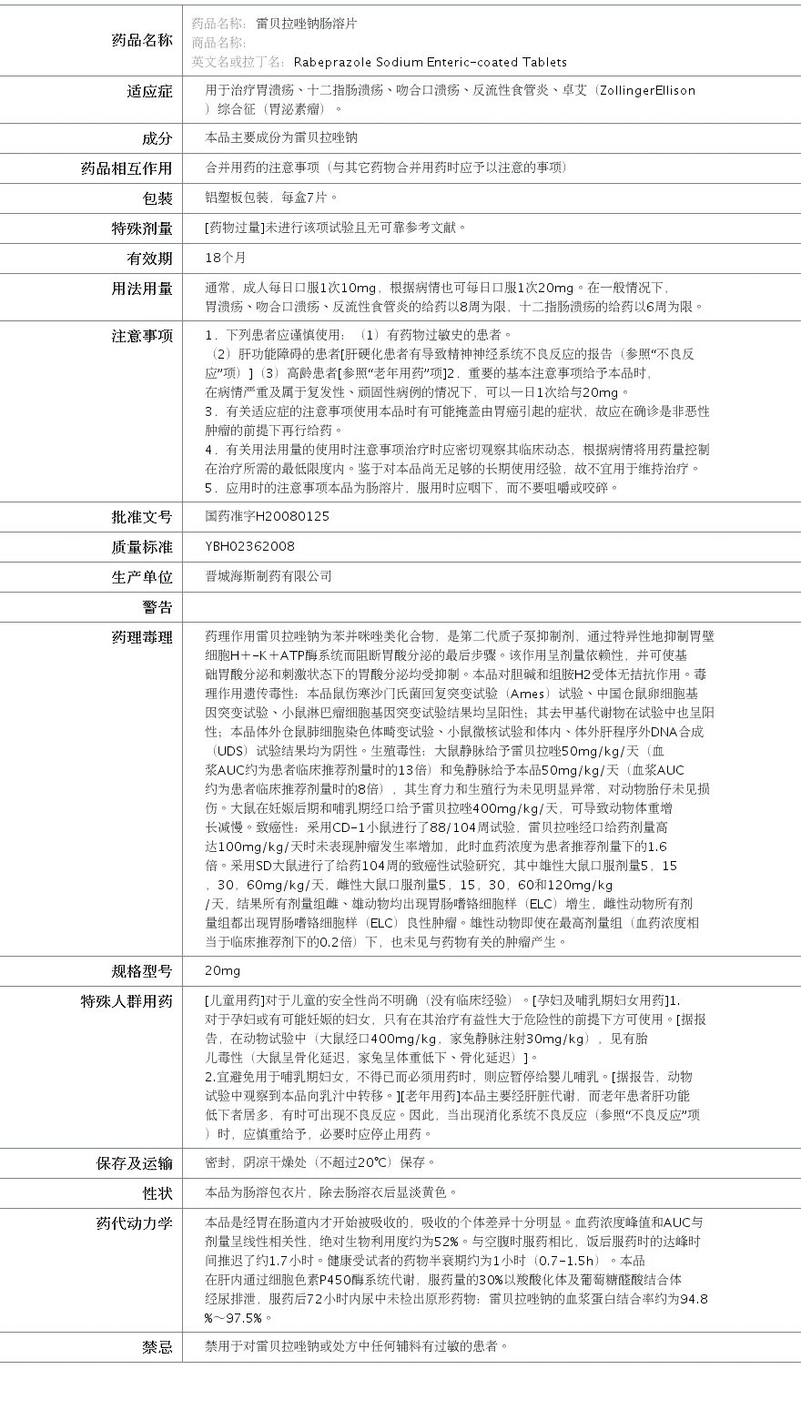 国药准字H20080125