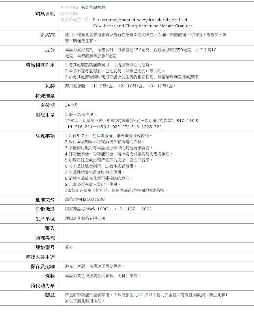 国药准字H21023336
