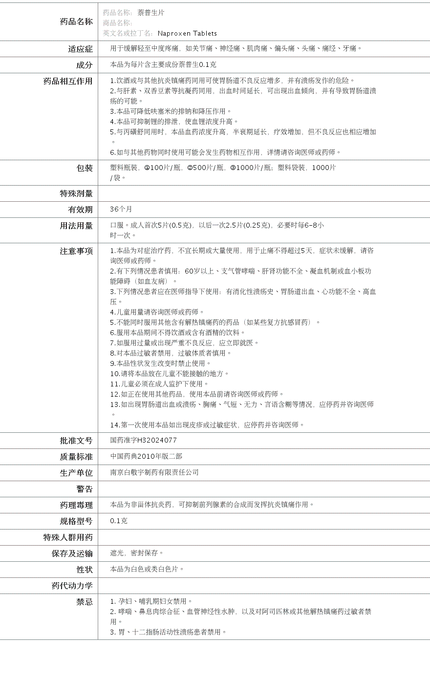 南京白敬宇制药有限责任公司