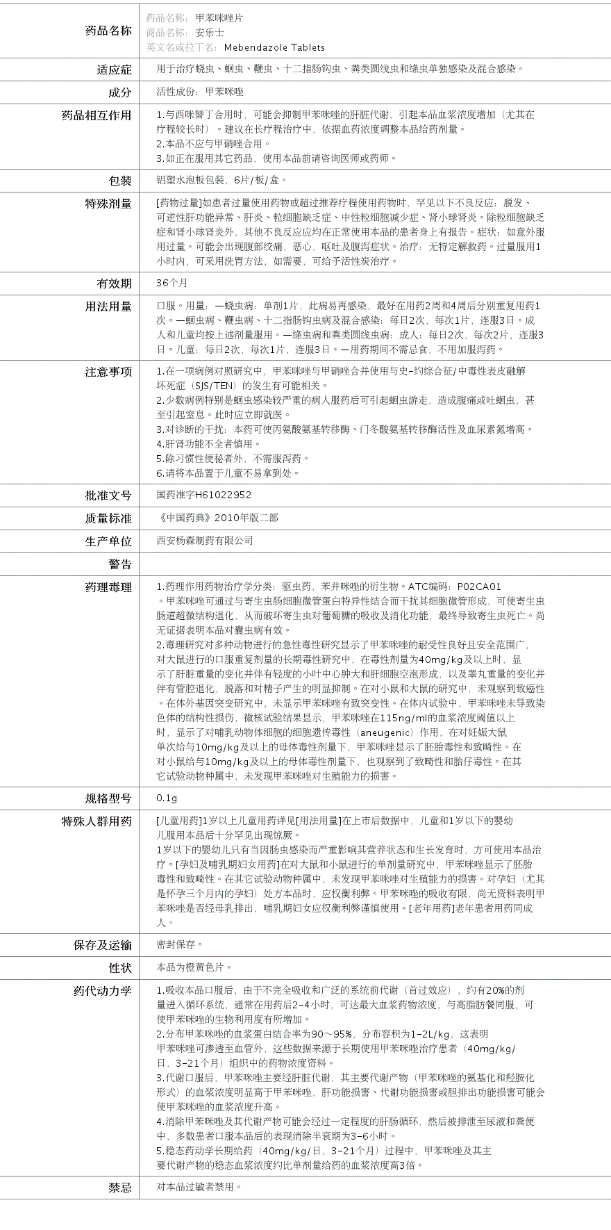 国药准字H61022952