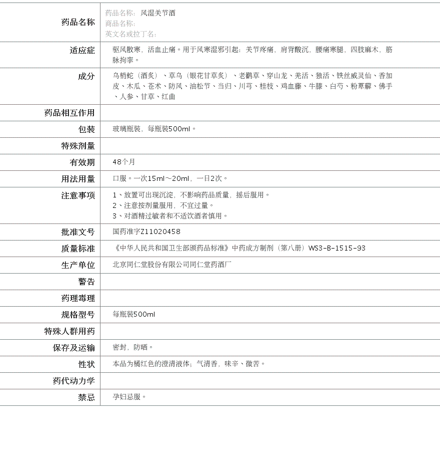 北京同仁堂股份有限公司同仁堂药酒厂