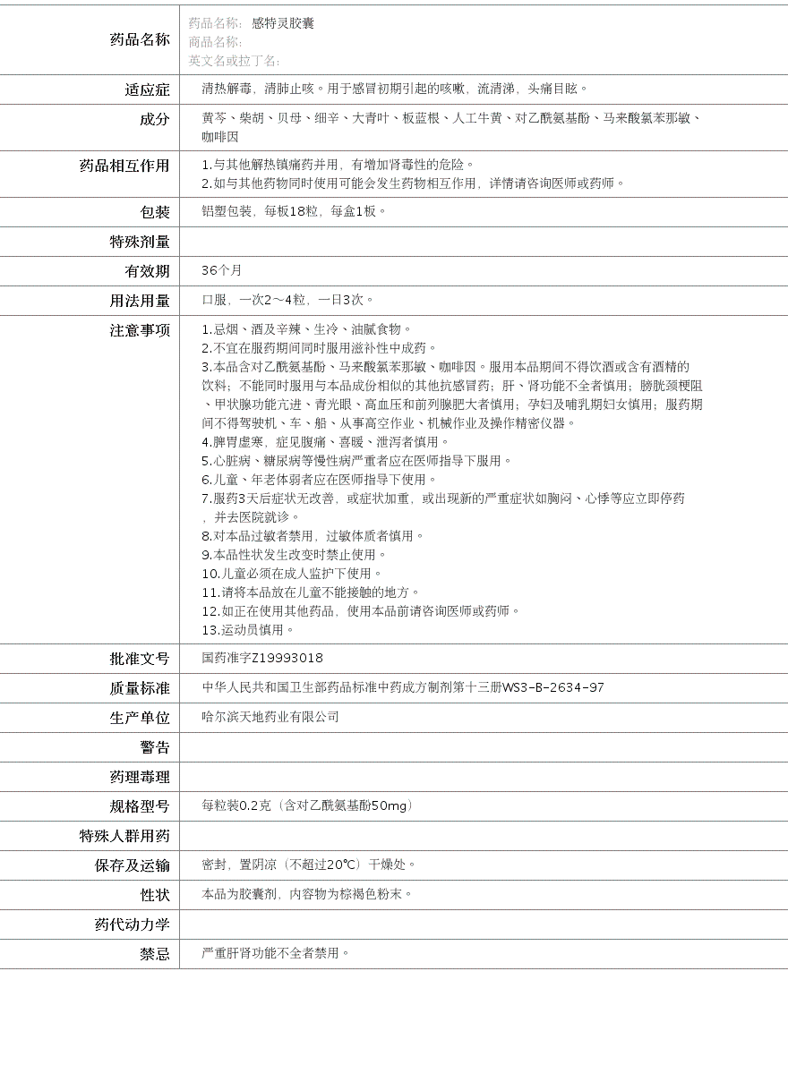 国药准字Z19993018