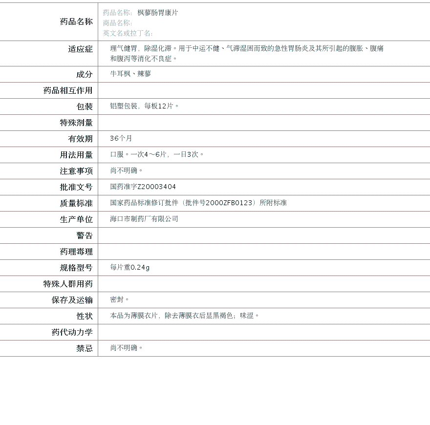 国药准字Z20003404