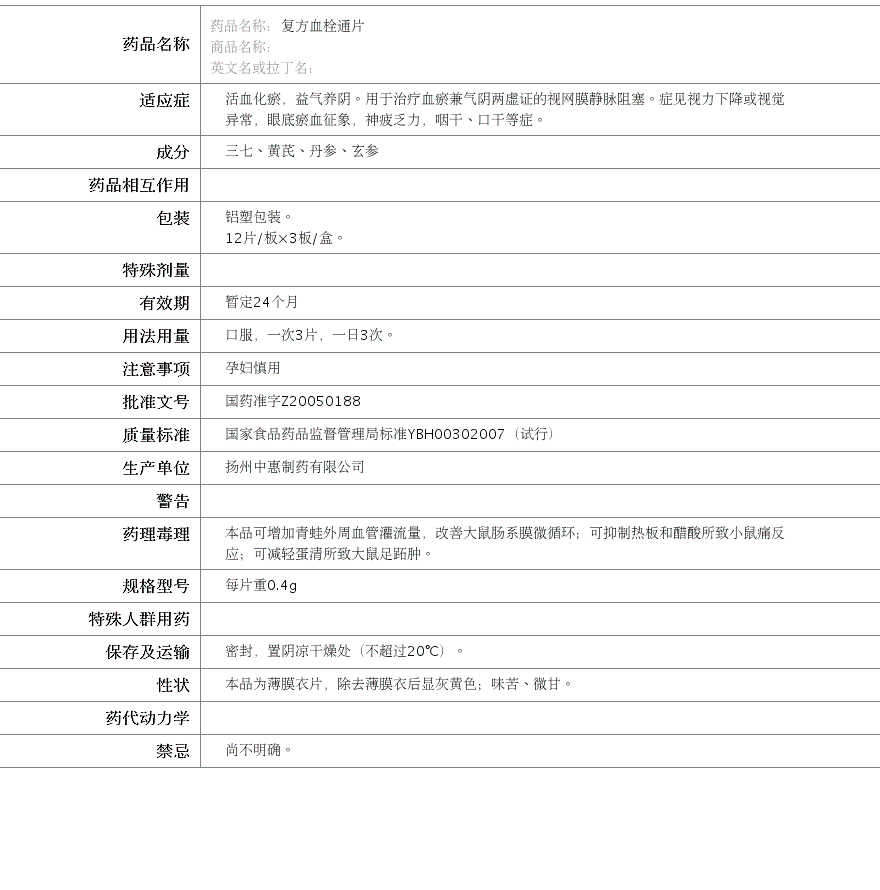 国药准字Z20050188