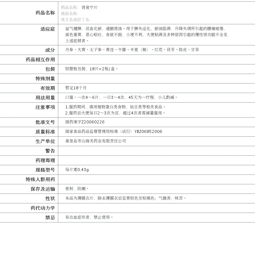秦皇岛市山海关药业有限责任公司