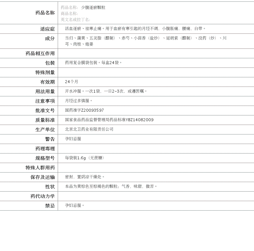 北京北卫药业有限责任公司