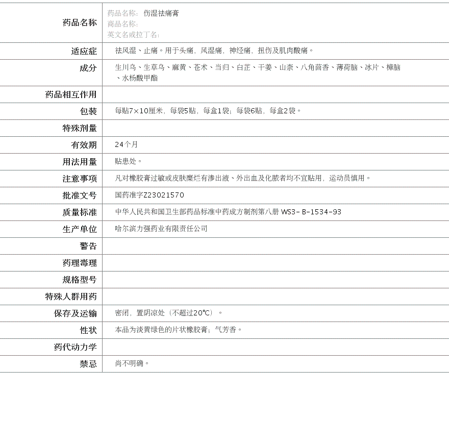 哈尔滨力强药业有限责任公司