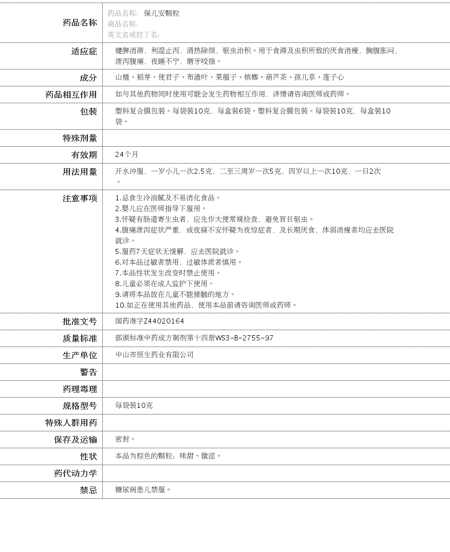 中山市恒生药业有限公司