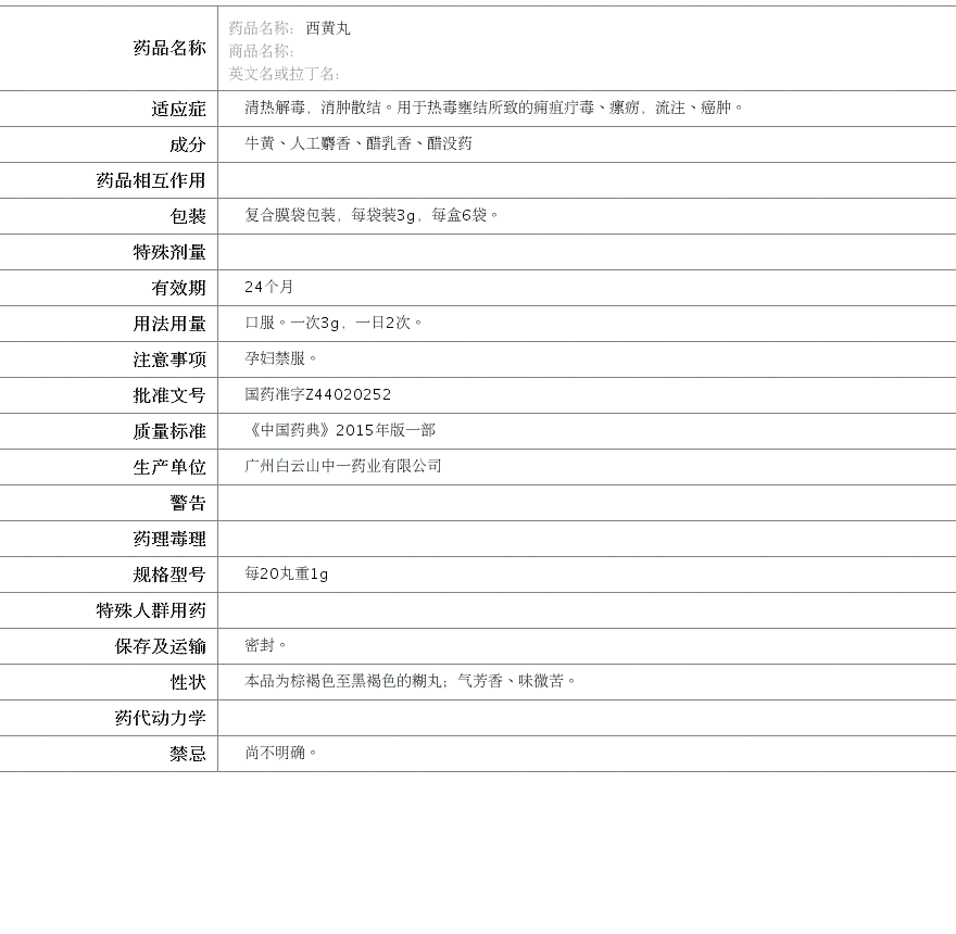 广州白云山中一药业有限公司