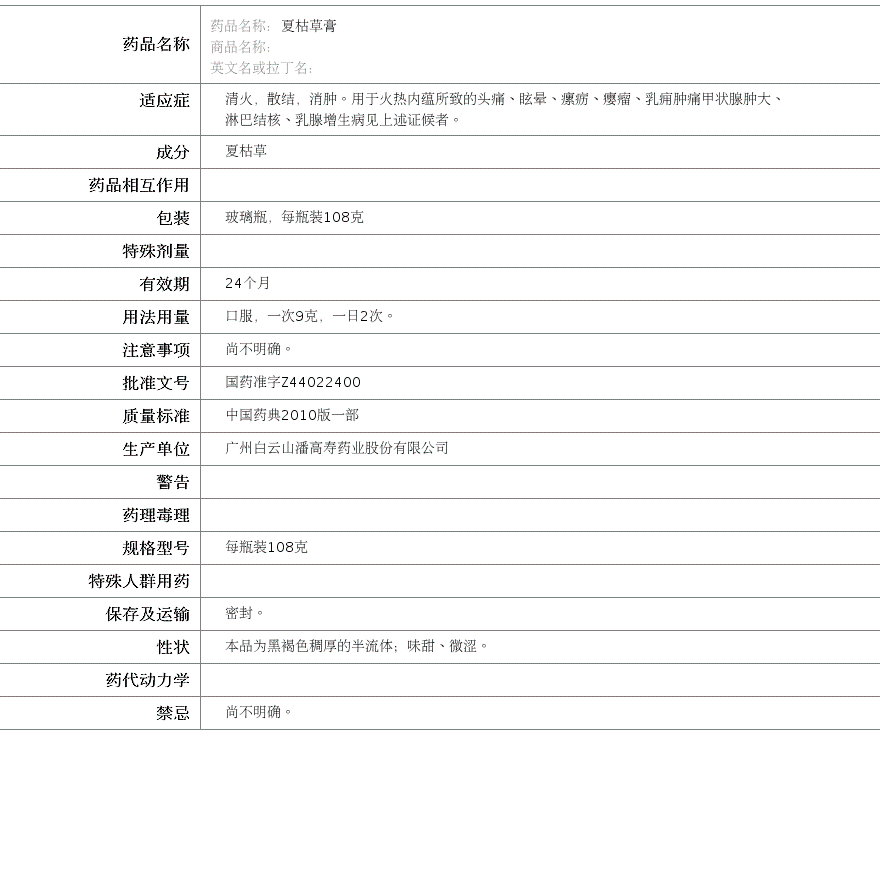 广州白云山潘高寿药业股份有限公司