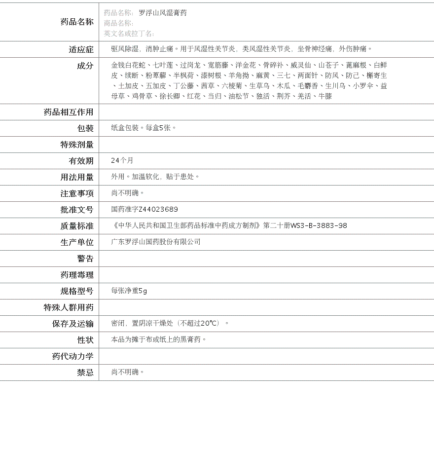 广东罗浮山国药股份有限公司