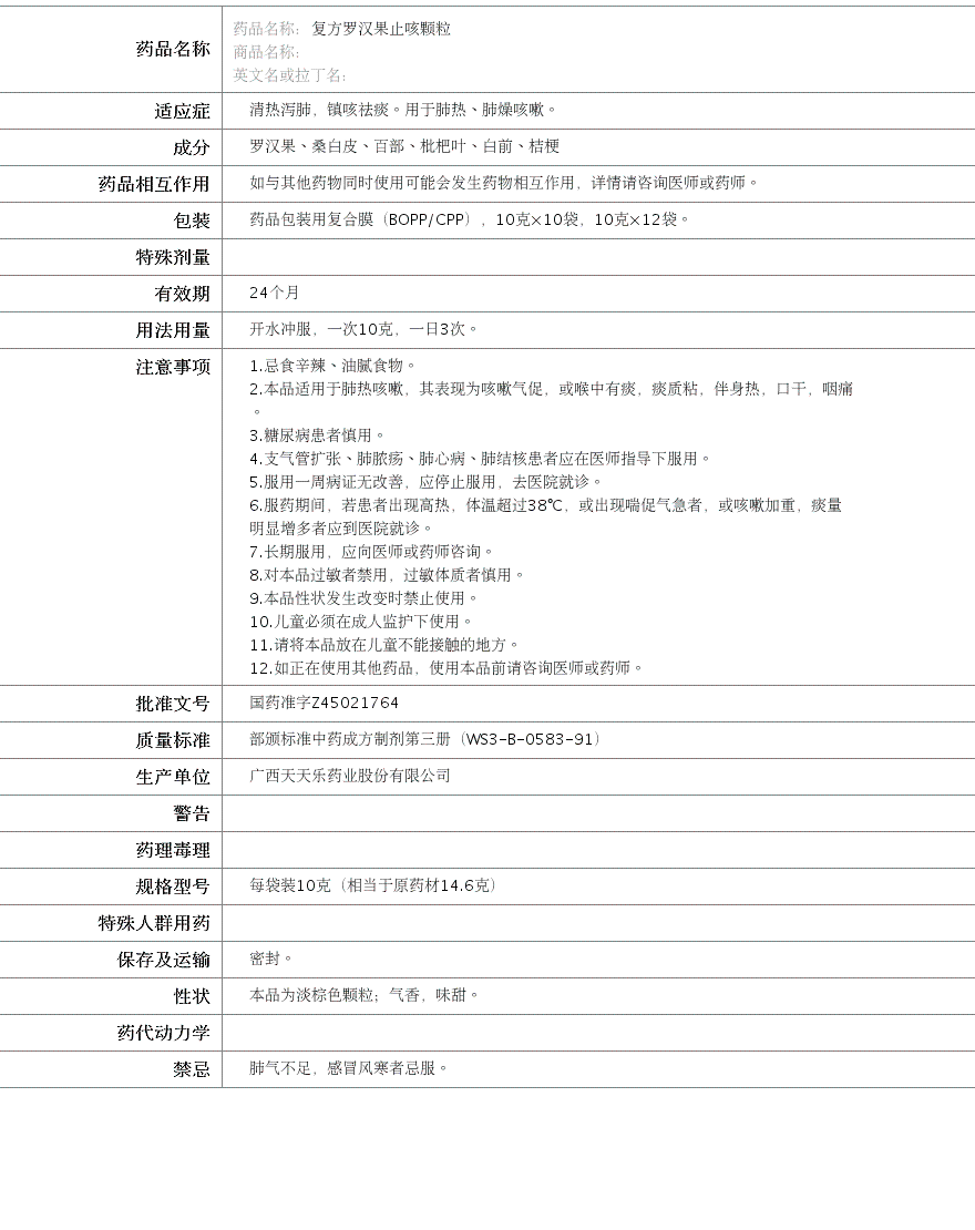 广西天天乐药业股份有限公司