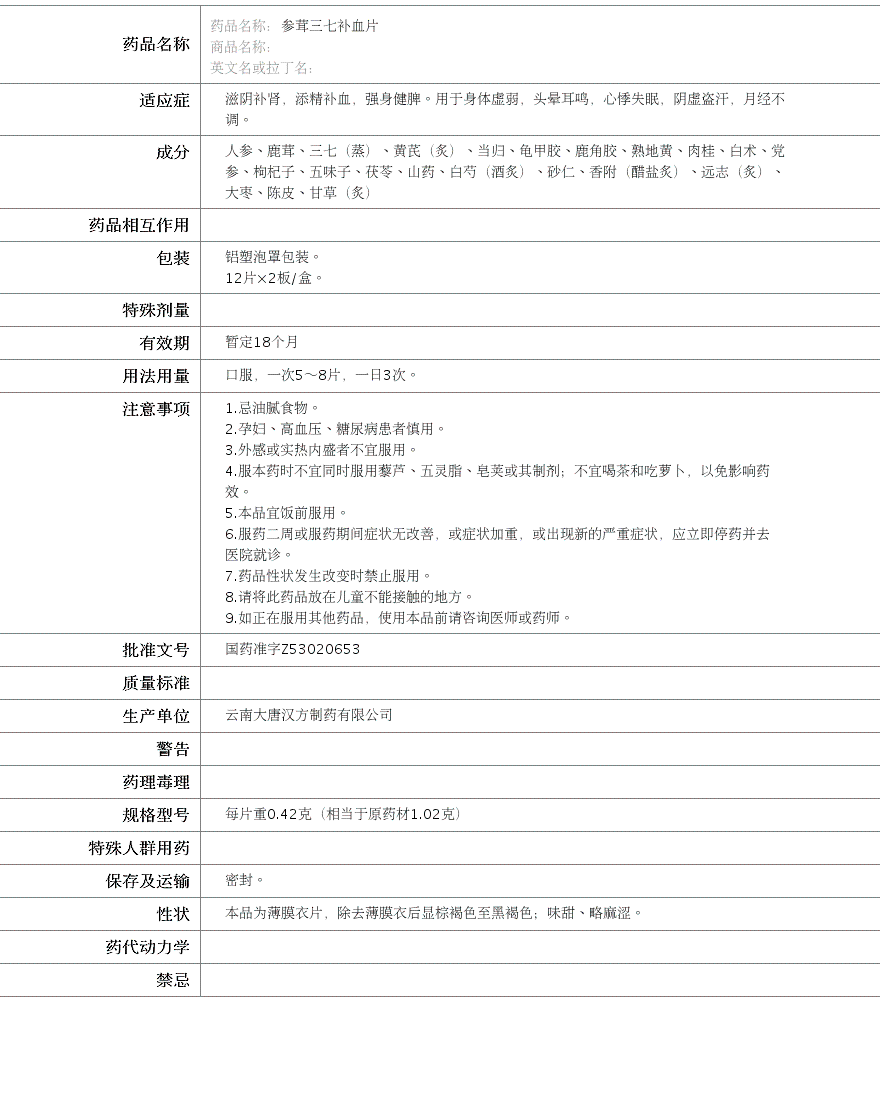 国药准字Z53020653