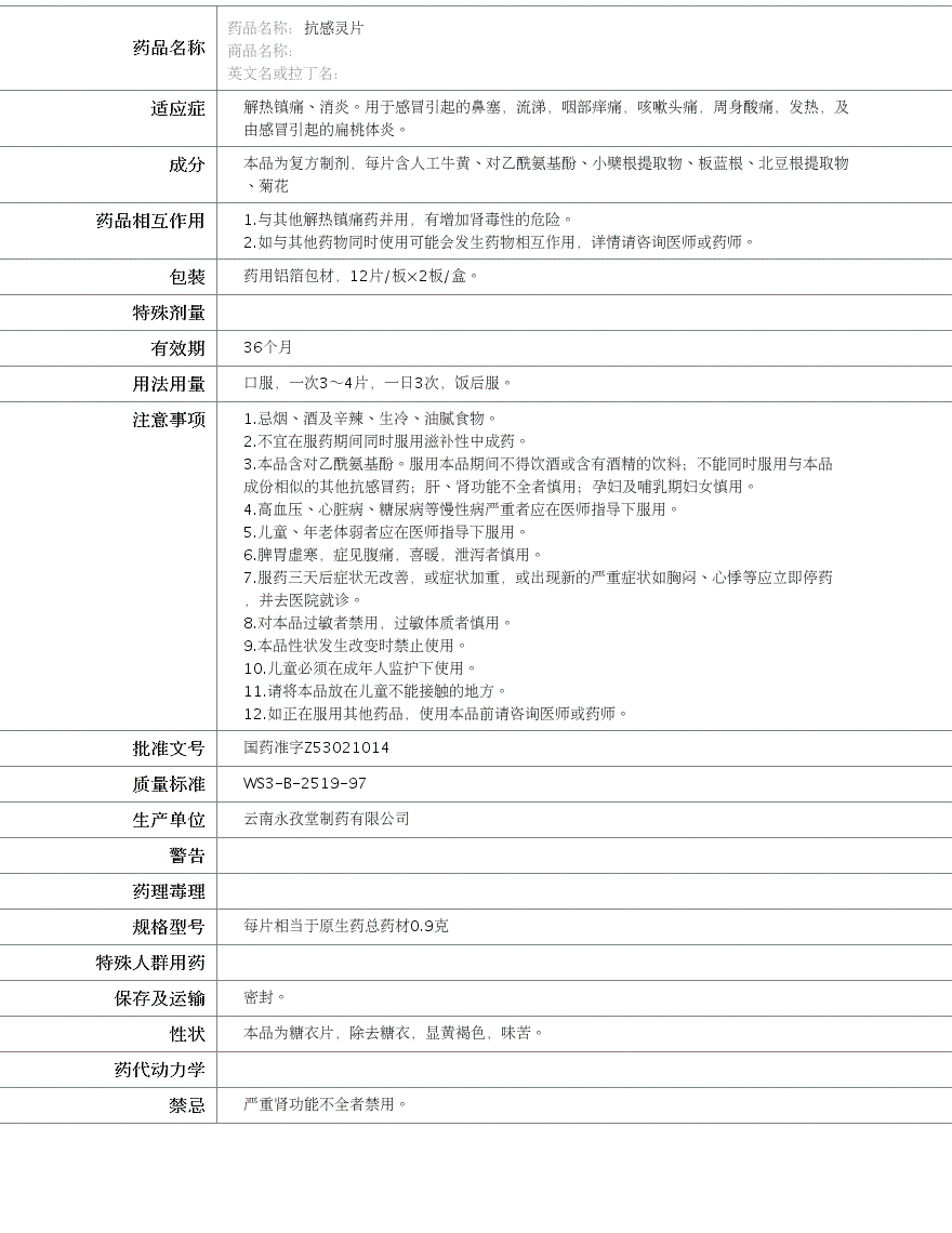 国药准字Z53021014
